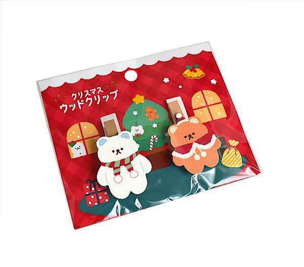 ●品名・ウッドクリップ2個 クリスマスくま柄