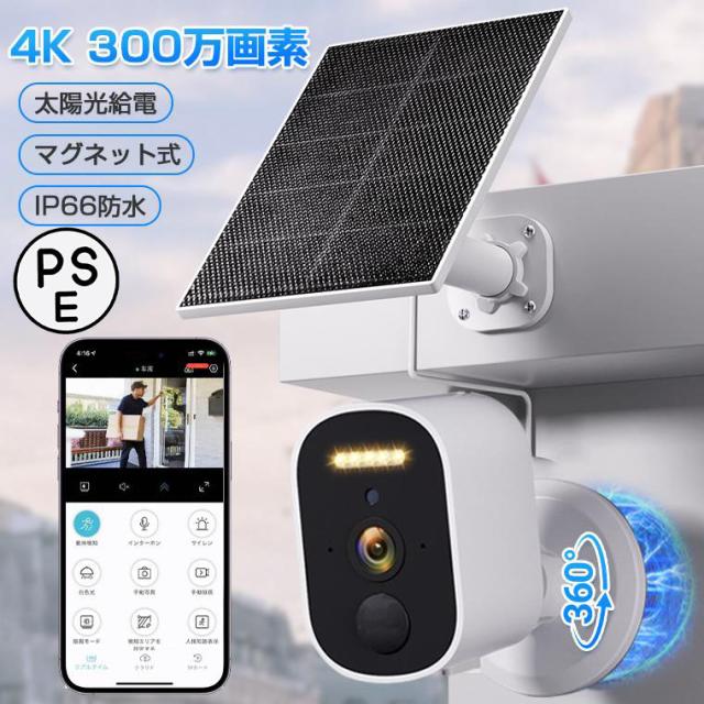 【工事不要・マグネット式】防犯カメラ 屋外 ソーラー マグネット 電源不要 穴あけ不要 WIFI ワイヤレス 充電式 ソーラー充電 ソーラーパネル付き 300万画素 4K