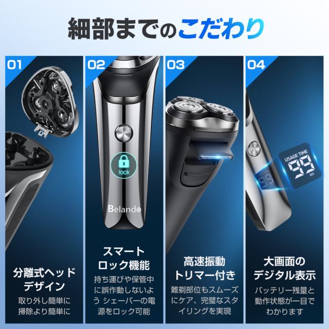 髭剃り 電気シェーバー メンズシェーバー シェーバー 男性 メンズ 急速充電 USB充電式 LED電池残量表示 スマートロック機能 髭剃り ヒゲソリ 電動 丸洗い可能 IPX7防水 深剃り 回転式 自動研磨機能 プレゼント