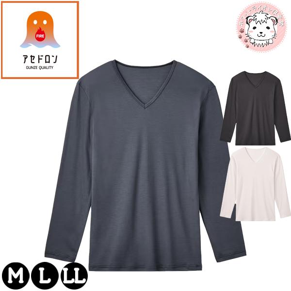 グンゼ アセドロン 長袖 Vネック V首 ファイヤーアセドロン 吸湿発熱 M/L/LL | 脇縫いなし 秋冬 秋 冬 メンズ アクリル 下着 肌着 インナー MHA409/P GUNZE