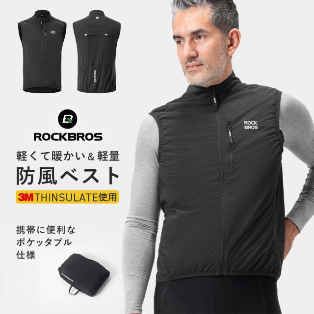 自転車 スポーツ ベスト ジレ サイクルジレ 防風 袖なし ポケッタブル 携帯 持ち運び ポケット付き ウィンドジレ 通気性 ベンチレーション 春 秋 重ね着 メンズ レディース サイクリング ランニング アウトドア ROCKBROS ロックブロス