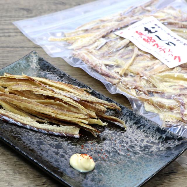 寒風干しで旨味が凝縮された北海道産の真鱈(まだら)の「鱈とば」です。