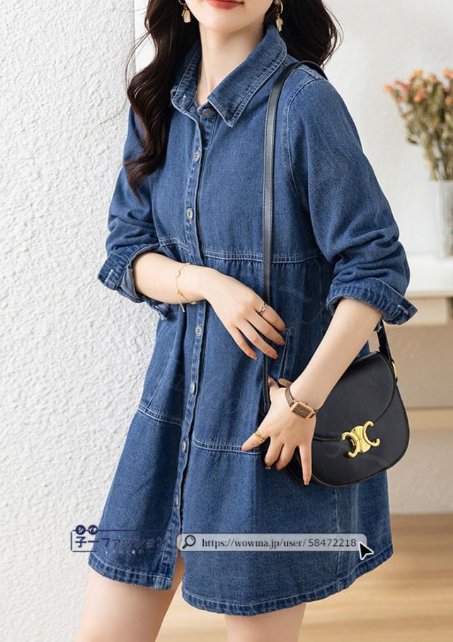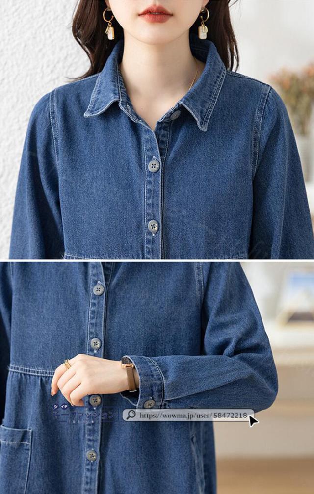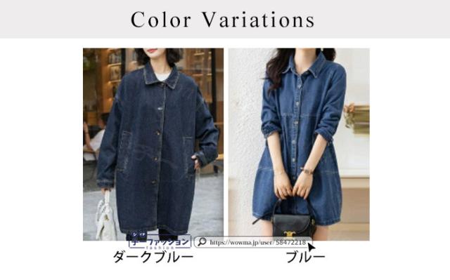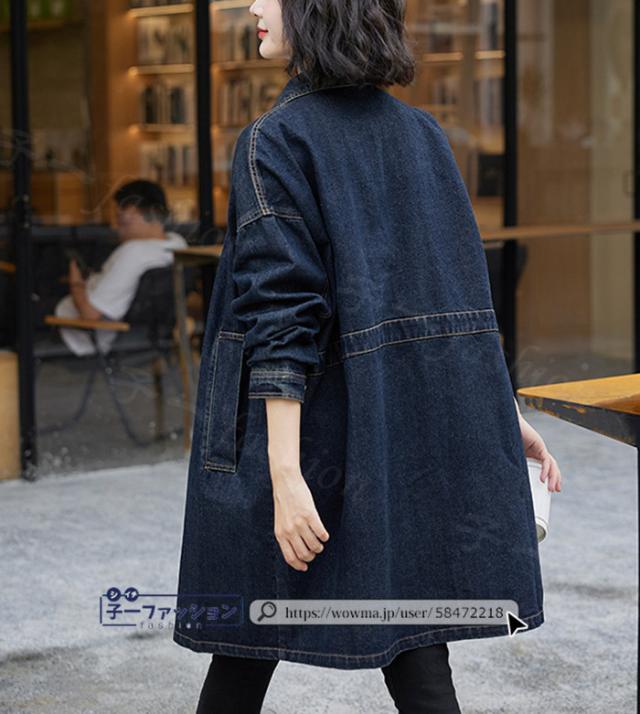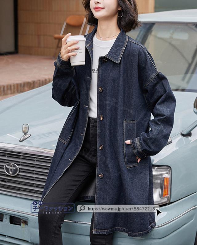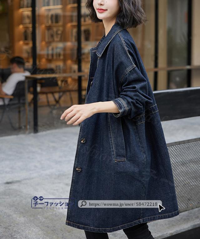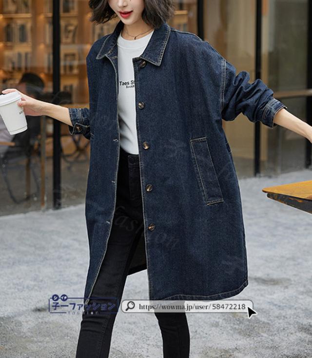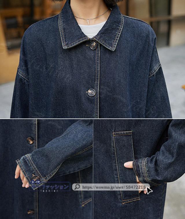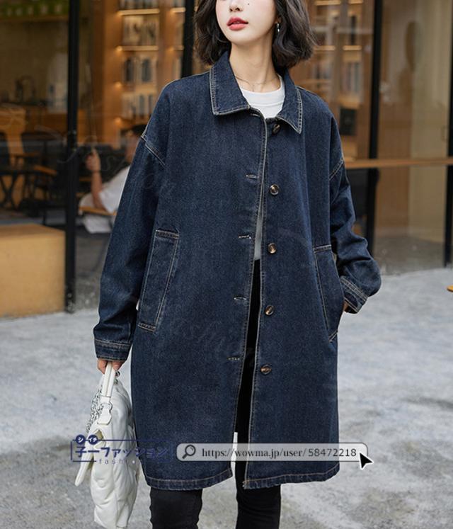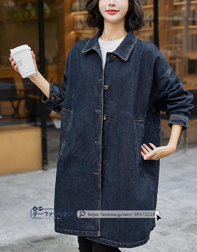 デニムコート 冬新作 レディース ロング丈 オーバーサイズ レディースコート トップス ジャケット 秋 冬 デニム アウター ステッチ コットン 大きいサイズ ネイビー ブルー 無地 通勤 普段着 長袖 春秋