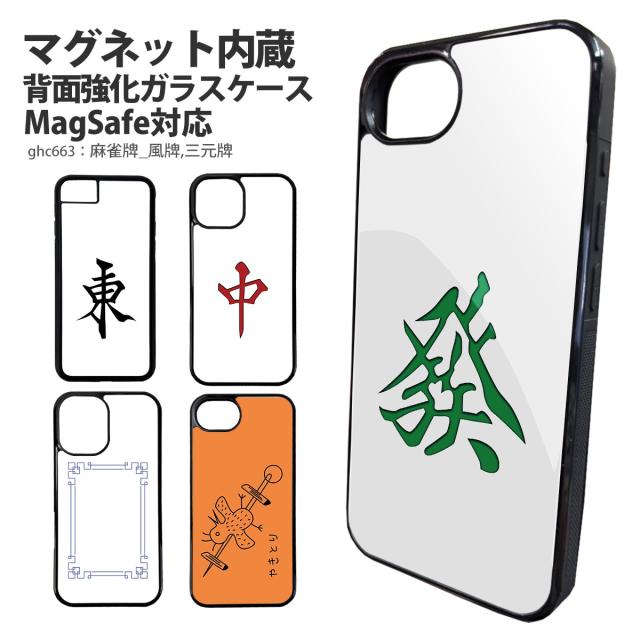 スマホケース 背面ガラス iPhone 16e SE 第3世代 バンパーケース 強化ガラス MagSafe マグネット内臓 iPhone15 iPhone14 SE 第2世代 デザイン 麻雀牌 風牌 三元牌 マージャン 麻雀