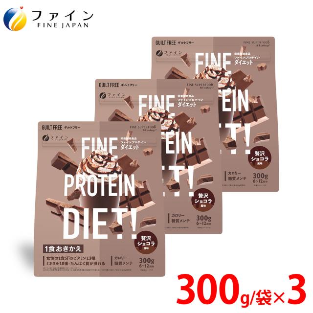 ファインプロテインDIET 贅沢ショコラ風味 300g 3個セット プロテイン ソイプロテイン L-カルニチン 黒胡椒抽出物 ビタミンA C 葉酸
