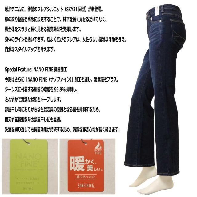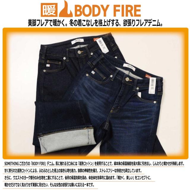 SOMETHING サムシング BODYFIRE 暖パン フレア デニム パンツ 超熟コットン 保温 ストレッチ 暖かい 美しい フレアシルエット スタイルアップ NANO FINE