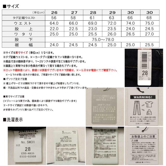 (ヌードサイズ表記とは数値が違いますので、お手持ちのパンツと測り比べてご注文ください。)