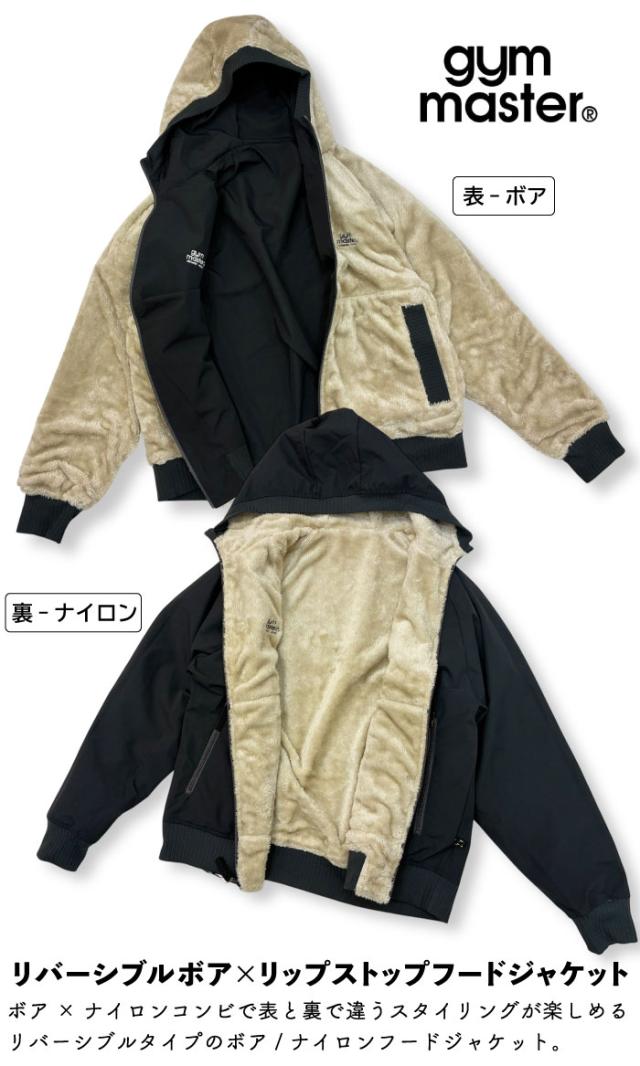 gym master ジムマスター リバーシブルボアxリップストップフードジャケット 防風 防寒 リバーシブル 2WAY ナイロン メンズ レディース アウター フリース ジップパーカー アウトドア キャンプ 車中泊 釣り 登山 冬 雪 寒い日 G618770