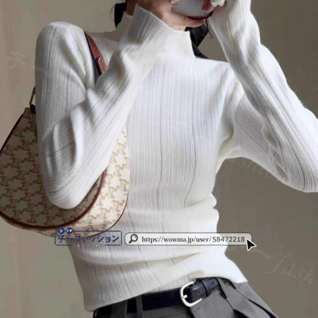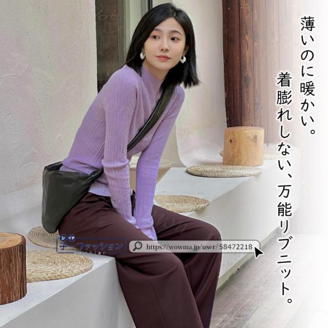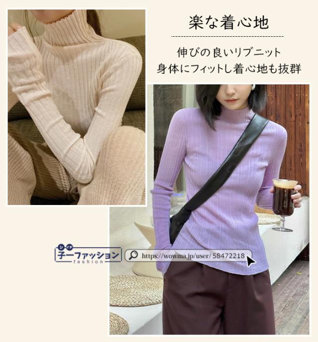 <1点あたり1,250円!2点同時購入&クーポン利用で>リブニット 着痩せ ニット リブ タートルネック ハイネック タートルニット 下着 インナー タートルネック トップス レディース きれいめ 長袖 無地 レイヤード 重ね着 シンプル 白 黒 ストレッチ 冷え取り 秋 冬
