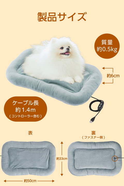 エレコム エレクトリック ヒーティングマット ペット用品 マット USB給電式 モバイルバッテリー対応 温度調節機能2段階 ケーブル長1.4m グレー┃PET-HC01GY