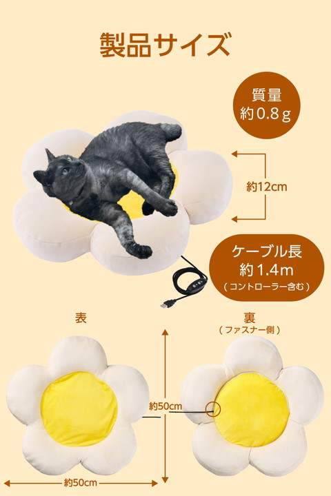 エレコム エレクトリック ヒーティングクッション ペット用品 クッション USB給電式 モバイルバッテリー対応 温度調節機能2段階 ケーブル長1.4m ベージュ┃PET-HC02BE