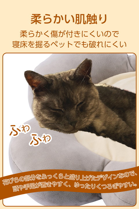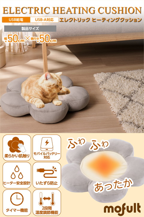 冬の暮らしを温かく快適に。柔らかな肌触りとふっくらした花びらのデザインで愛犬や愛猫がリラックスできる、USB給電式のヒーティングクッションです。モバイルバッテリー対応でコンセントがない場所でも使えます。外カバー・中クッションともに手洗いできるので、清潔を保ちながら繰り返し使えます。