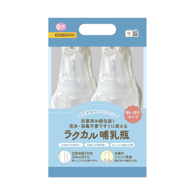 EDISONmama ラクカル哺乳瓶 新生児 0ヶ月〜 使い捨て哺乳瓶 2本セット 洗浄不要 消毒不要 使い切り個包装 シリコン乳首