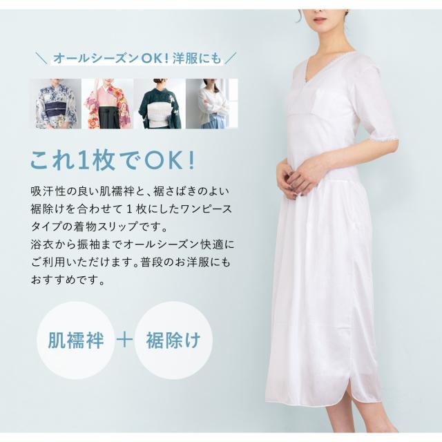 きものスリップ 肌着 インナー レディース ワンピース 和装 和服 着付け 和装下着 肌襦袢 裾除け 卒業式 成人式 通年 ホワイト 白 着物 スリップ M L 着付 和装インナー メール便対応