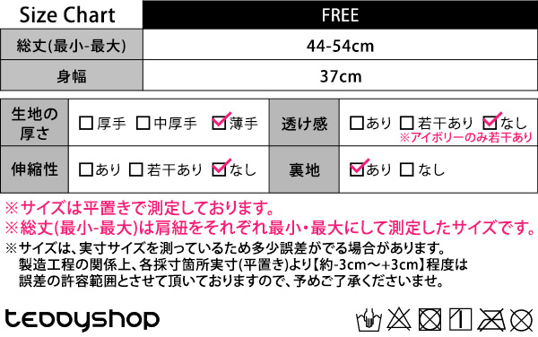 製造工程の関係上、各採寸箇所実寸(平置き)より【約-3cm〜+3cm】程度は