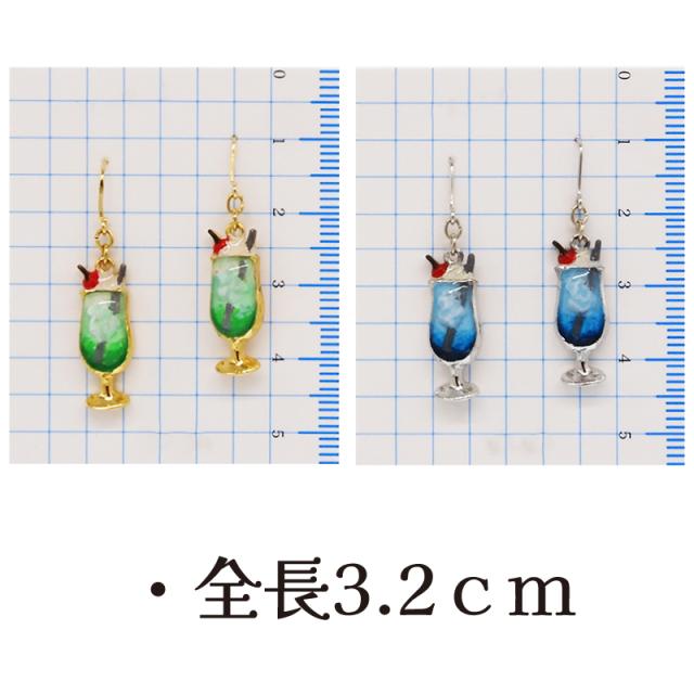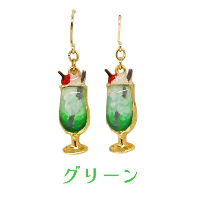 クリームソーダピアス メロン ブルーハワイ クリームソーダ 喫茶店 レトロ フックタイプ ピアス ミニチュア 食品サンプル アクセサリー アクセ ガーグル PS14084