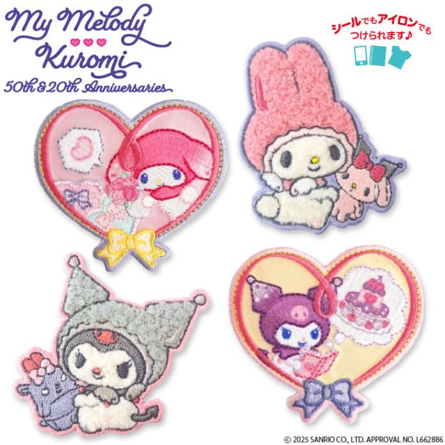 マイメロディ 50th クロミ 20th Anniversary ワッペン アイロン シール かわいい 刺繍 サガラ ふわふわ キャラクター グッズ プレゼント 服