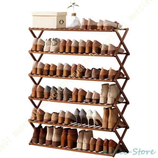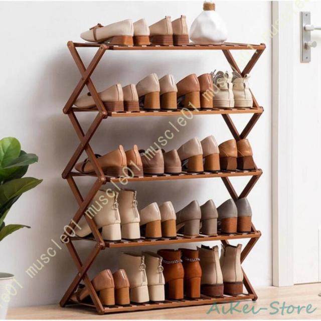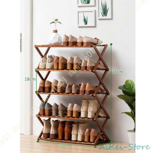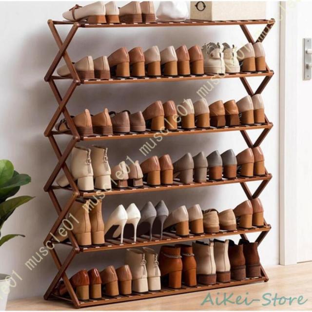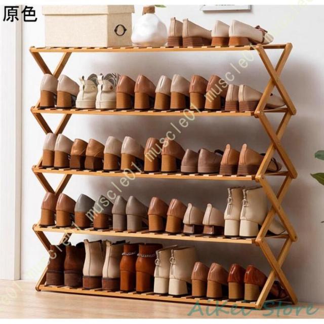 シューズラック 靴収納 靴棚 下駄箱 省スペース 竹製シューズラック スリム 玄関に靴を効率収納 下足棚 組立不要 折りたたみ可能 カビ防止 シューズ収納ラック