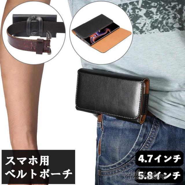 スマホケース ベルトポーチ スマホポーチ ウエストポーチ型 ベルト通し ホルダー 横型 レザー調 シンプル おしゃれ かっこいい マグネット シンプル