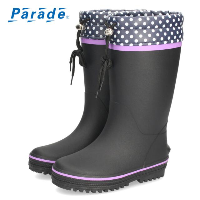 キッズ 長靴 おしゃれ 女の子 レインブーツ 水玉 かわいい 絞れる ジュニア レインシューズ 歩きやすい 滑りにくい パレード 56603 Parade
