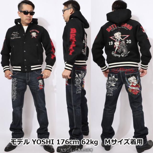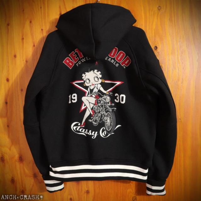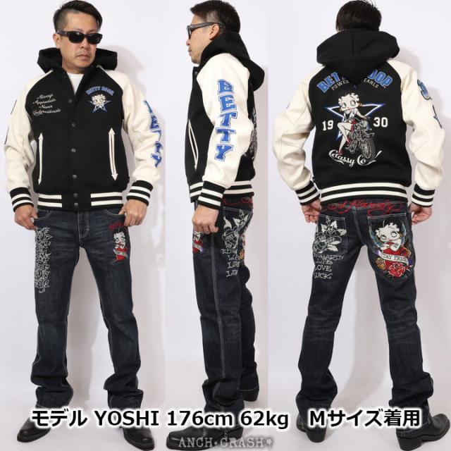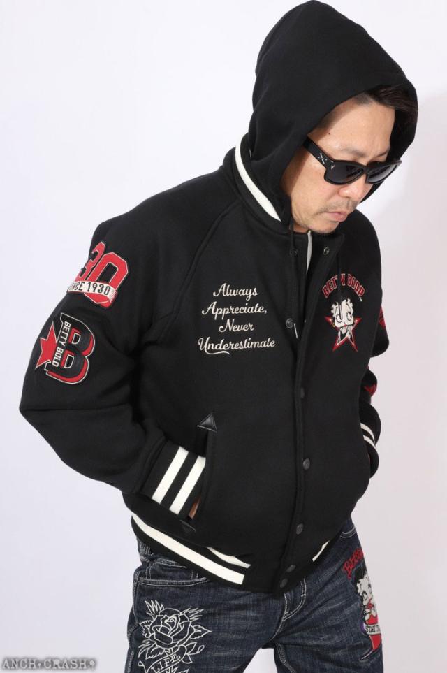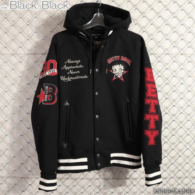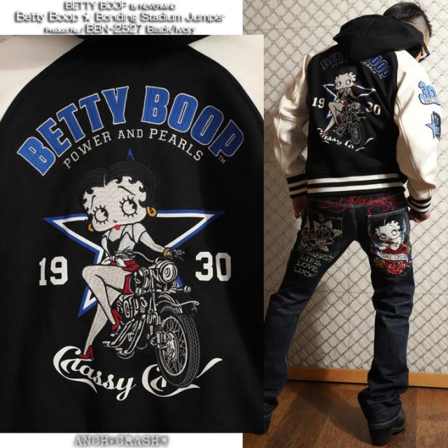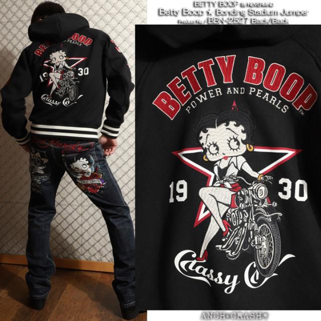 BETTY BOOP ボンディング スタジャン (BBN-2527) 【送料無料】ベティブープ NEVERMIND 刺繍 ワッペン フード脱着式
