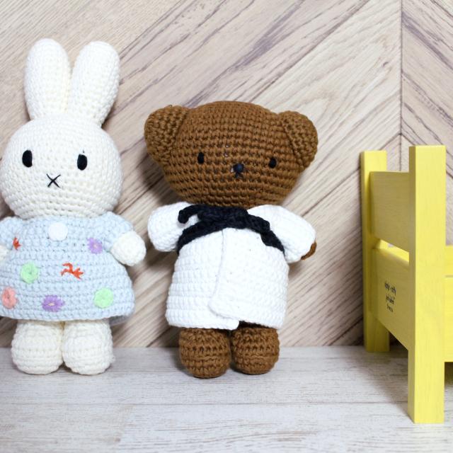 ミッフィーをはじめとしたキャラクターたちは、ひとつひとつ手編みで丁寧に作られています。