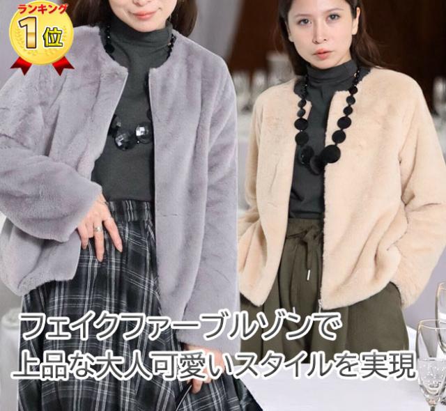 上品でなめらかな肌ざわりが魅力のノーカラーフェイクファーブルゾン。
