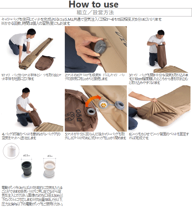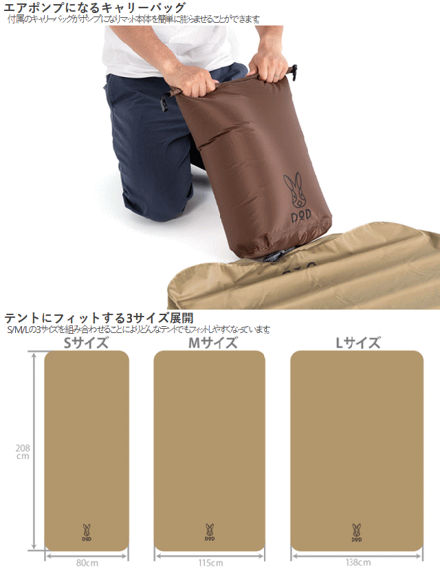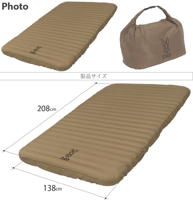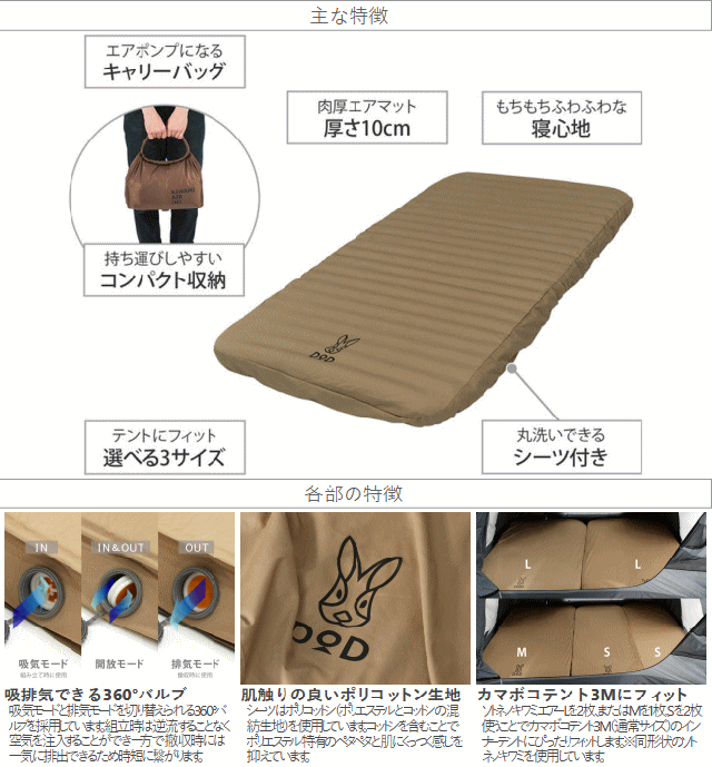 DOD マット エアマット インフレータブル式エアマット 丸洗いできるシーツ付き エアポンプになるキャリーバッグ アウトドア キャンプ ソトネノキワミエアーL CM3-943-TN
