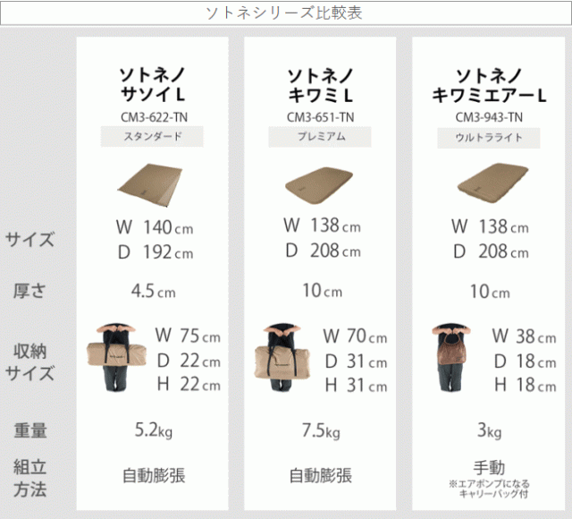 ![]() 荷物を減らしたいキャンパーのための「もちふわ」エアマット。シーツ付き。 「ソトネノキワミって収納サイズがデカいんだよねー。」 多くの人がそう思っていたことでしょう。 しかーし!もう心配はいりません! シーツが付いてもなおツーリングキャンパーもウェルカムなコンパクトさに仕上がりました。 ※ただしソトネノマクラは付属しません。 ![]() ![]() ![]() ![]() ![]() ![]() ![]() |