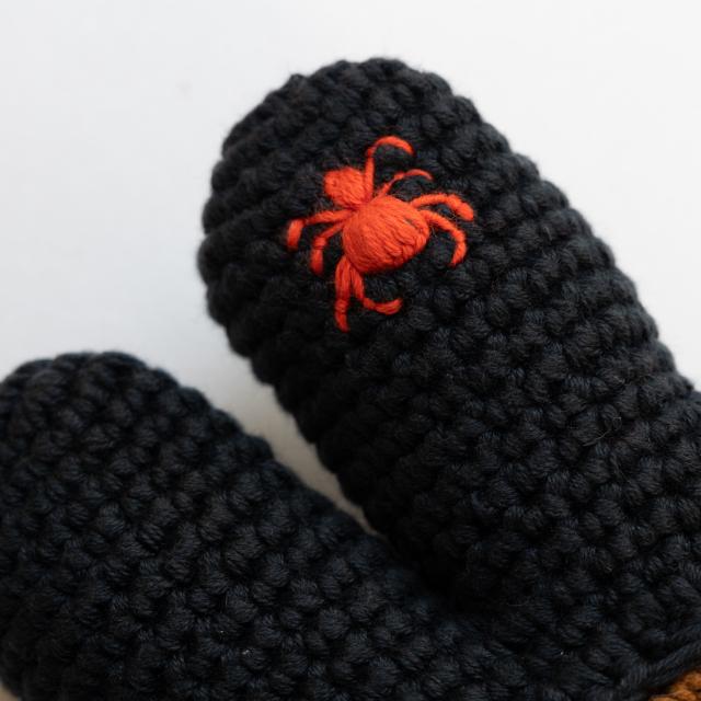 ハロウィン仕様のデザインで、フード付きのブラックケープには小さなスパイダーがちょこんと。