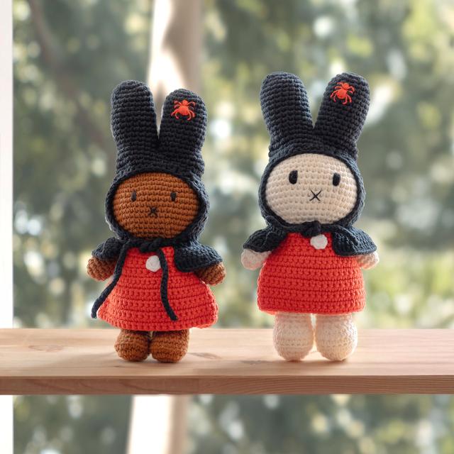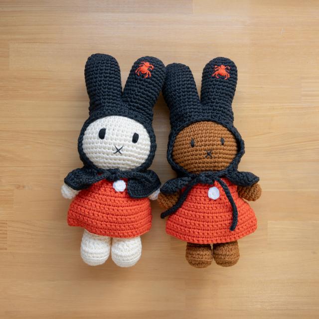 | お着替えしましょ。トリックorトリートな気分に。 ミッフィー(メラニー)の編みぐるみ「JUST DUTCH(ジャストダッチ)」シリーズの着せ替えパーツです。 ハロウィン仕様のデザインで、フード付きのブラックケープには小さなスパイダーがちょこんと。 オレンジのドレスはノースリーブになっています。 ジャストダッチの編みぐるみは、ベトナムでハンディキャップを持った方々の手によってひとつひとつ手編みで作られています。 JUST DUTCH(ジャストダッチ)は、オランダ発のハンドメイド編みぐるみブランド。 ミッフィーをはじめとしたキャラクターたちは、ひとつひとつ手編みで丁寧に作られています。 やわらかなオーガニックコットンを使用し、赤ちゃんにもやさしい仕上がり。 インテリアとしても、お子さまへの贈り物としても、幅広い世代に愛されています。 温もりのあるデザインと、高いクラフトマンシップが魅力です。 |
