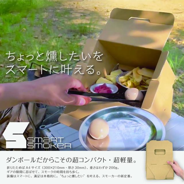 ダンボールだからこその超コンパクト・超軽量。 折りたためばA4サイズ(300×21sm・厚さ 3cmm)、重さわずか200g。 ギアの隙間に忍ばせて、スモークの時間を持ち歩く。 装備はスマートに、満足は本格的に。「ちょっと燻したい」をかなえるスモーカーの定番です。