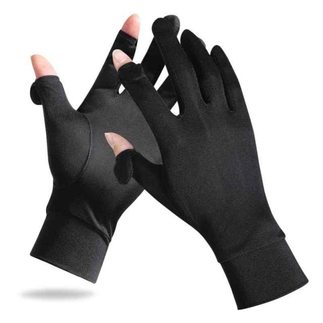 [SUCFORTS] シルク 手袋 スマホ対応 おやすみ 紫外線 対策 UVカット レディース メンズ 手荒れ 薄手 就寝用 ロング 日焼け 乾燥 紫外線 夏 ナイト手袋 意匠登録1752361 (M, ブラック)