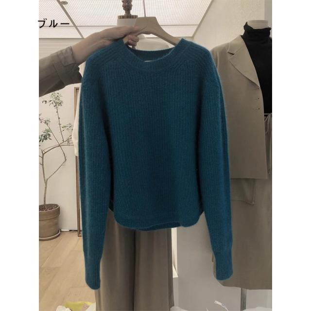 レディース ニット セーター 秋冬 短丈 厚手 プルオーバー トップス インナー ニットソー 小柄さん向け 体型カバー カジュアル おしゃれ きれいめ 防寒 通勤 通学 S M L XL ブラック/ライトブラウン/ダークブラウン/ブルー