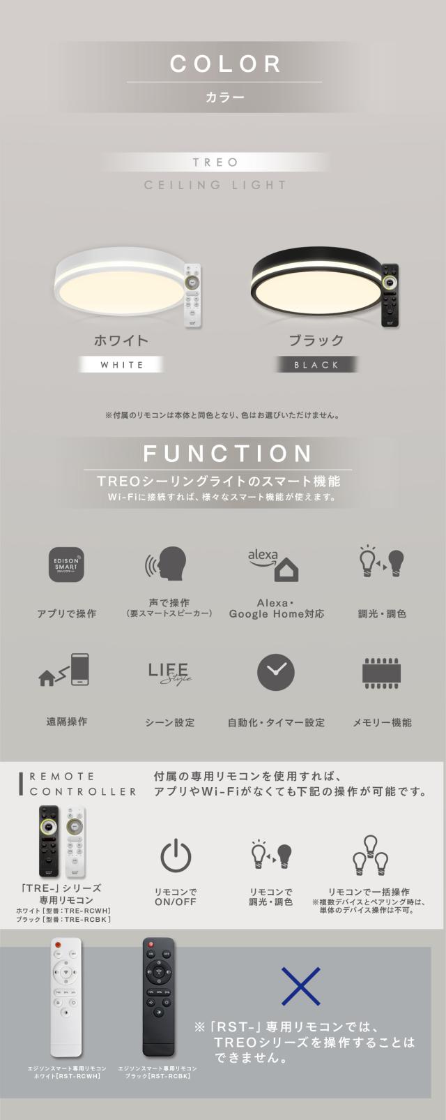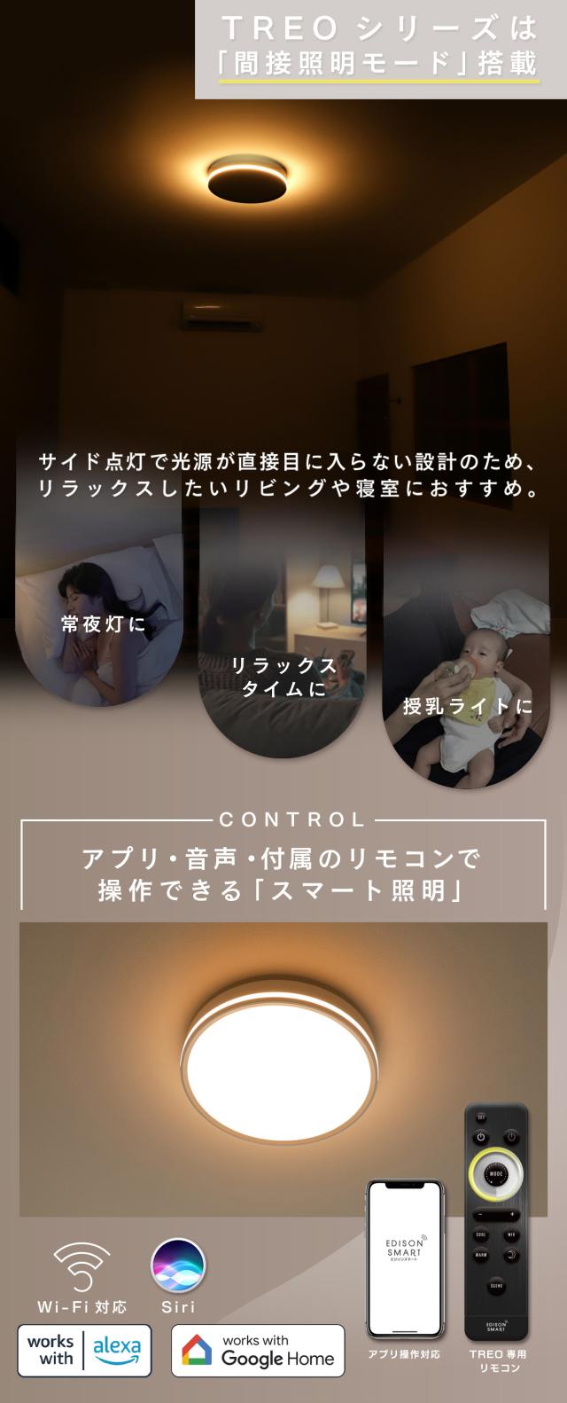 LED シーリングライト 調光調色 薄型 エジソンスマート TREOシーリングライト 8畳 Wi-Fi アプリ 音声操作 アレクサ グーグルホーム Siri対応 リモコン付属 タイマー 自動点灯 常夜灯 間接照明 アッパーライト シンプル おしゃれ 北欧風 モダン 円形 丸型 天井照明