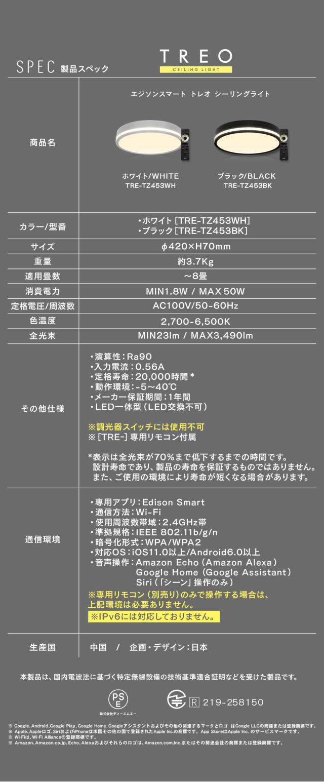 | 型番 | ・ホワイト[型番: TRE-TZ453WH] ・ブラック[型番: TRE-TZ453BK] |