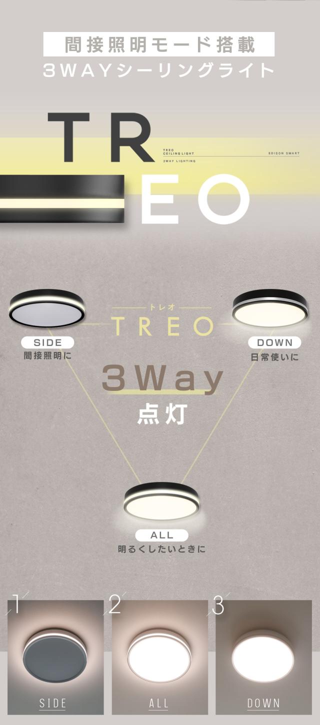 中でも人気のスマート照明シリーズから、間接照明にもなる3Way点灯の「TREO(トレオ)シーリングライト」が新登場!