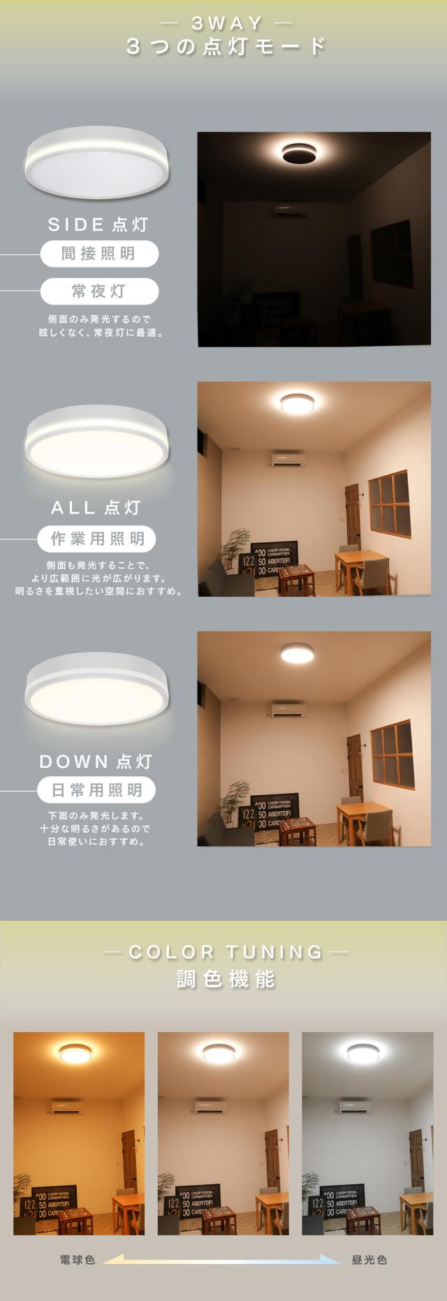 さらに、アプリ・音声操作・付属リモコンの3WAY操作で、冷暖調色・調光を自由にコントロールできます。