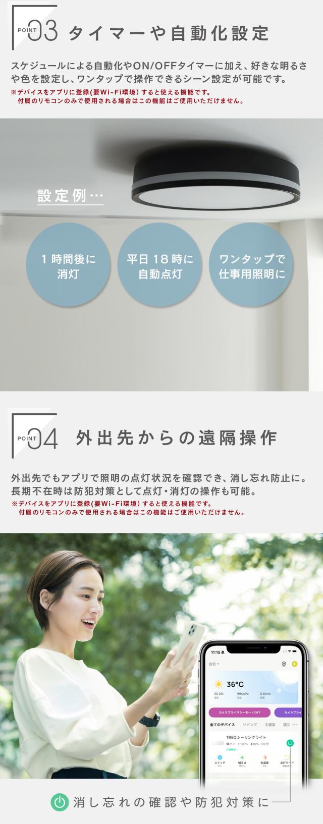 Wi-Fi(2.4GHz帯のみ)に接続すれば、タイマー/スケジュール設定による自動点灯・消灯