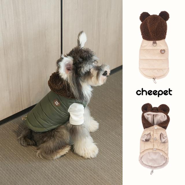 寒い季節のお出かけやお散歩にぴったりな中綿入りの犬用ダウン風ベストです。