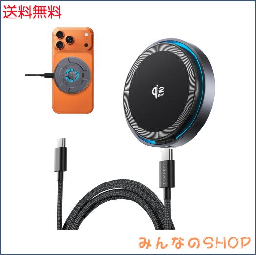 THREEKEY MagSafe充電器【Qi2公式認証 25W高速充電】高回転冷却ファン・効果的な放熱 両面マグネット式 マグセーフ充電器 Qi2.2 25W超高