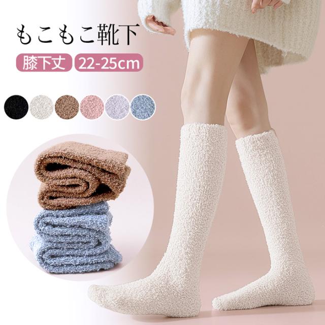 あったか 膝下丈 もこもこソックス レディース 厚手 無地 シンプル ふわふわ 靴下 冷え対策 部屋履き 両面起毛 ハイソックス 秋冬 黒 白 茶 紫 青 lg-006