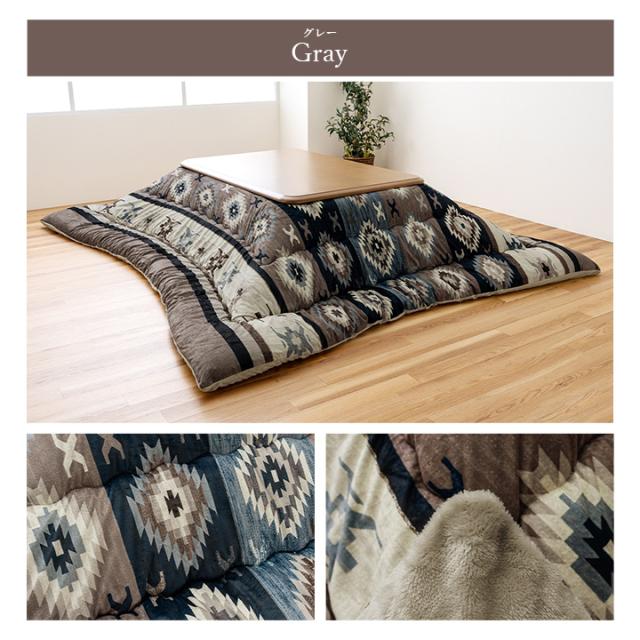 ロザン こたつ布団 長方形大 キリム 国産 フランネル 手洗い 205×285cm グレー レッド