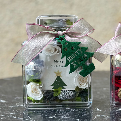 クリスマスデザインの可愛いプリザーブドフラワーです。