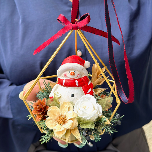 お花に囲まれたスノーマンがとても可愛いです。
