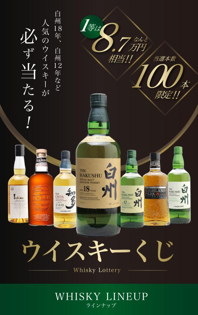 【第23弾】白州18年くじ!高確率・ウイスキーガチャ・1/100で白州18年・1/20で白州12年・1/10で白州が当たる!100本で高確率!!66%でジャパニーズウイスキーが当たる!!