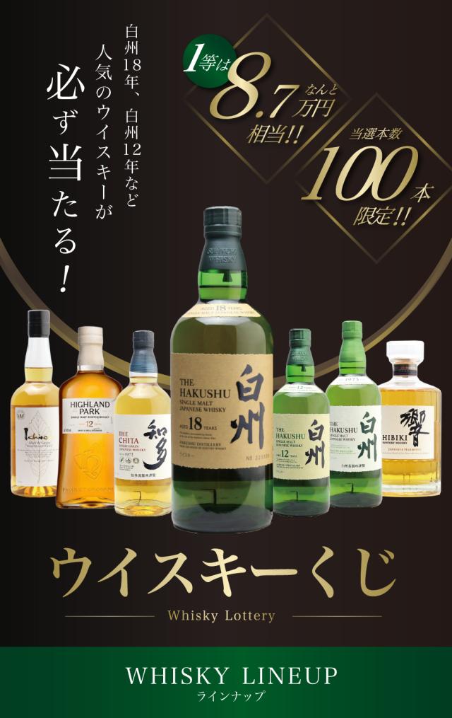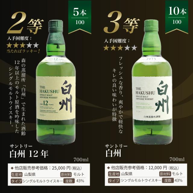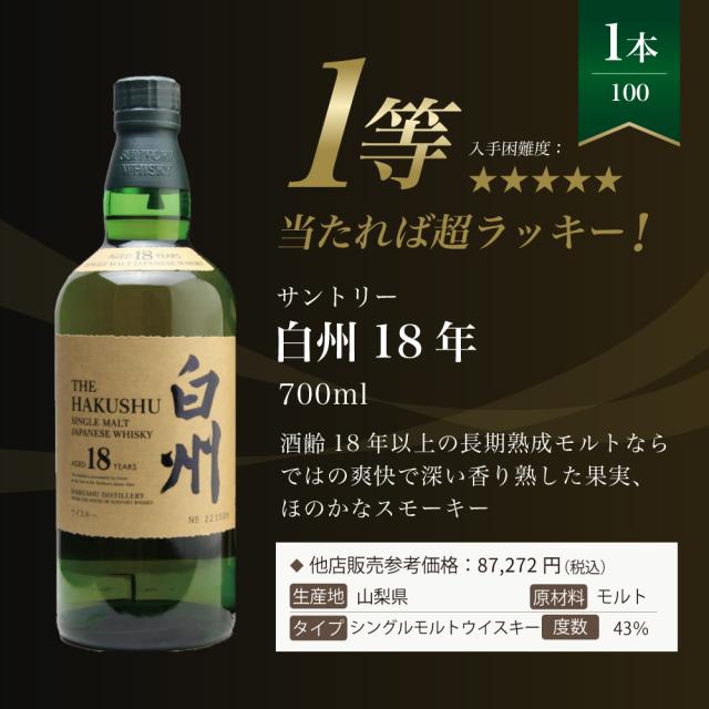【第26弾】白州18年くじ!高確率・ウイスキーガチャ・1/100で白州18年・1/20で白州12年・1/10で白州が当たる!100本で高確率!!65%でジャパニーズウイスキーが当たる!!