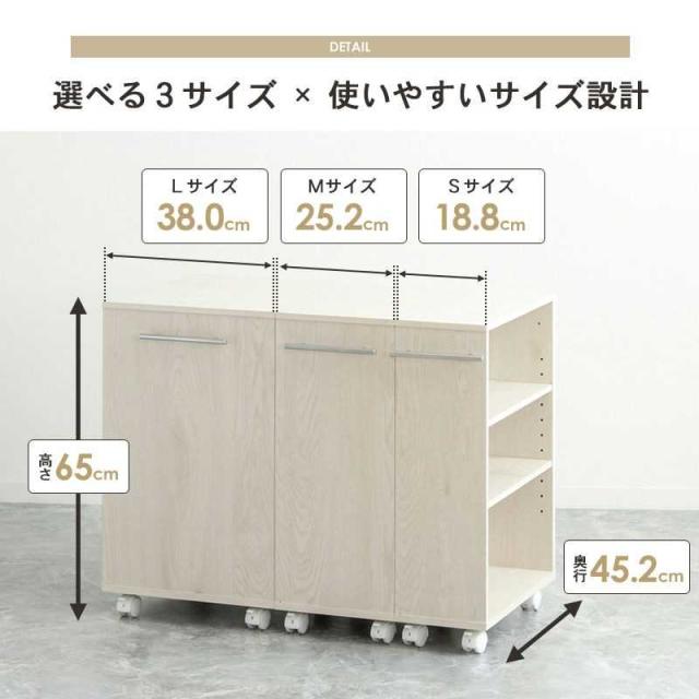(19cm/25cm/38cm)から選べ、雑誌や日用品、掃除グッズなどをきれいに整理可能。