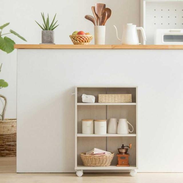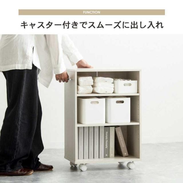 キャスター付きなので、小物を収納したままでもスムーズに引き出せます。幅は3サイズ