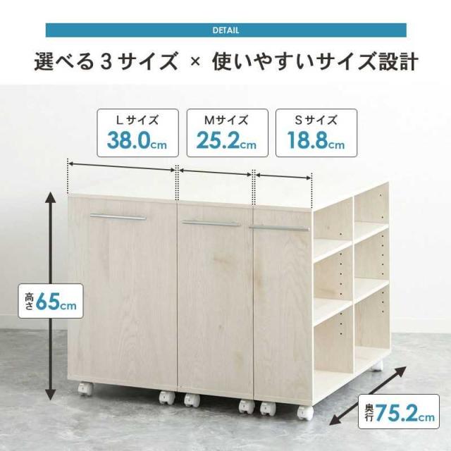 (19cm/25cm/38cm)から選べ、雑誌や日用品、掃除グッズなどをきれいに整理可能。